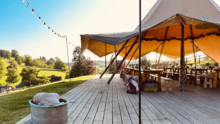 Join us Friday evenings 6-9pm for delicious wood-fired pizza made by our Italian Pizzaiolo Salvatore and drinks, including local Rebellion beer and Hundred Hills sparkling wine. All served from shepherd’s huts next to the tipi. As the sun goes down, cosy up as twinkling lights replace the fading twilight.